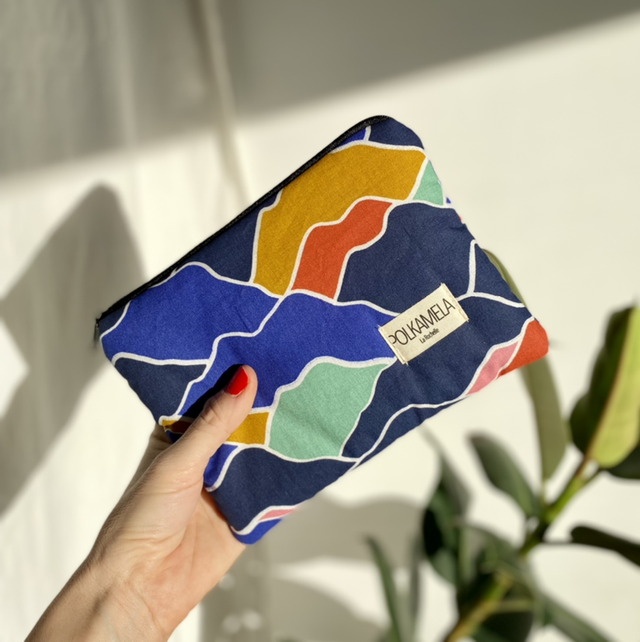 Pochette, fermeture zip. Idéale pour le maquillage ou organiser les papiers.