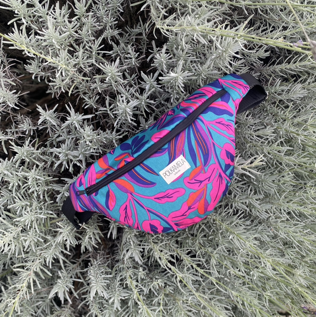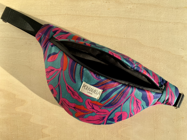 Ce sac banane vitaminé, petit format, juste comme il faut, est équipé d'une sangle ajustable.