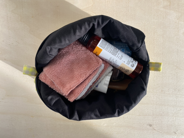 UMA est une trousse beauté super logeable aux multiples fonctions. Peut également être utilisée en panière (retourner les extrémités).